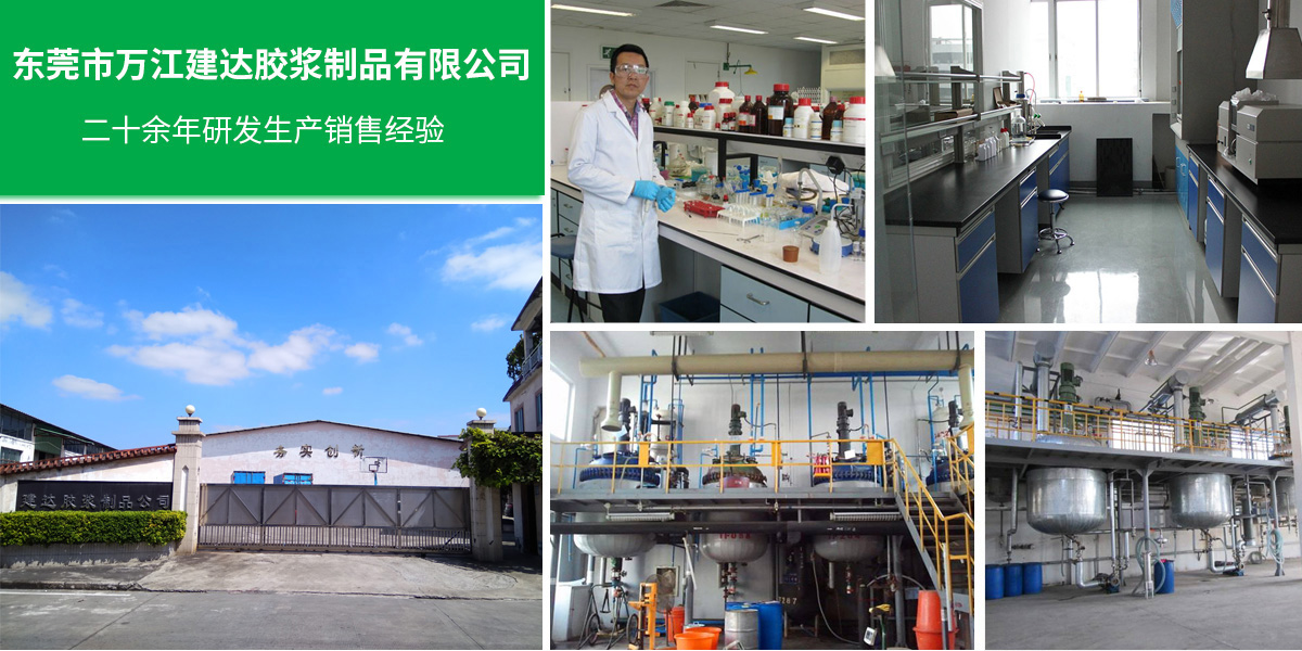 东莞市万江建达胶浆制品有限公司主要研发生产各种粘合剂。产品主要有水性胶粘剂、热熔胶粘剂两大类型。应用于建筑材料、纺织布材、印刷包装、工艺品制造等